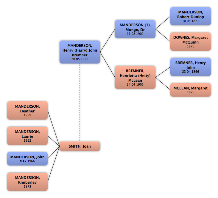 MANDERSON, Margaret (Madge) | Aunt | 1907 | ‘Craigie’ Irvine | 1996 | |