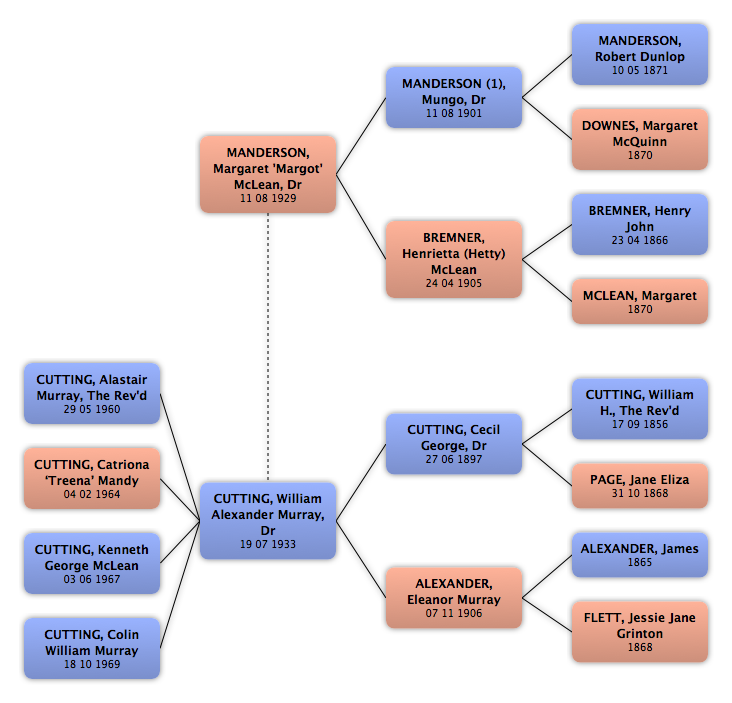 MANDERSON, Margaret (Madge) | Aunt | 1907 | ‘Craigie’ Irvine | 1996 | |
