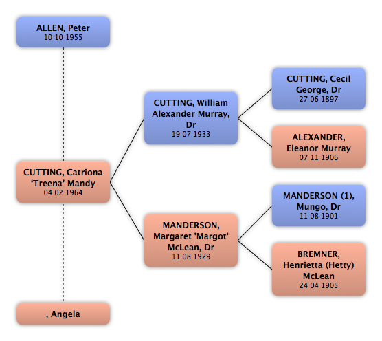 MANDERSON (1), Mungo, Dr | Grandfather in-law | 11 08 1901 | Irvine, SCOTLAND | 18 02 1959 | Surbiton, ENGLAND |